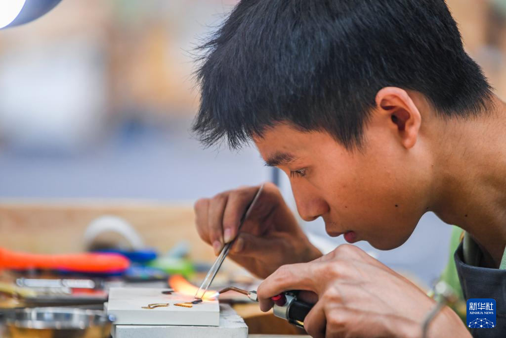 6月24日,第二届“一带一路”国际技能大赛珠宝加工项目选手在比赛中。新华社记者 王全超 摄pagebreak