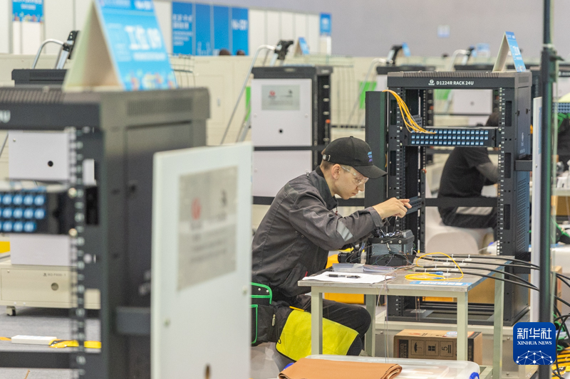 6月24日,在重庆国际博览中心举行的第二届“一带一路”国际技能大赛现场,参赛选手在参加信息网络布线项目比赛。新华社记者 黄伟 摄pagebreak