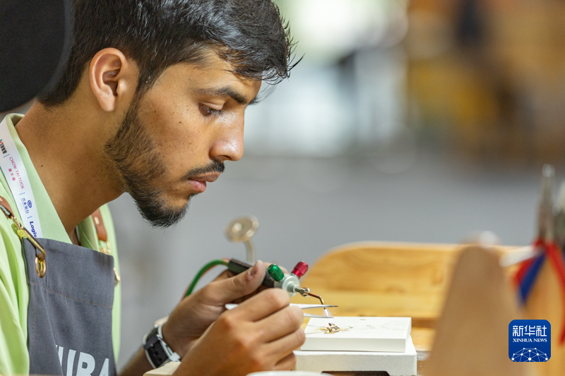 6月24日,第二届“一带一路”国际技能大赛珠宝加工项目选手在比赛中。新华社记者 王全超 摄