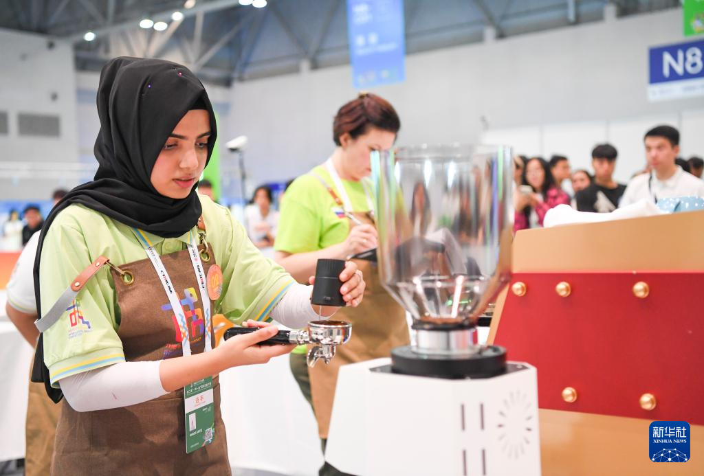 6月24日,第二届“一带一路”国际技能大赛咖啡制作项目选手在比赛中。新华社记者 王全超 摄pagebreak