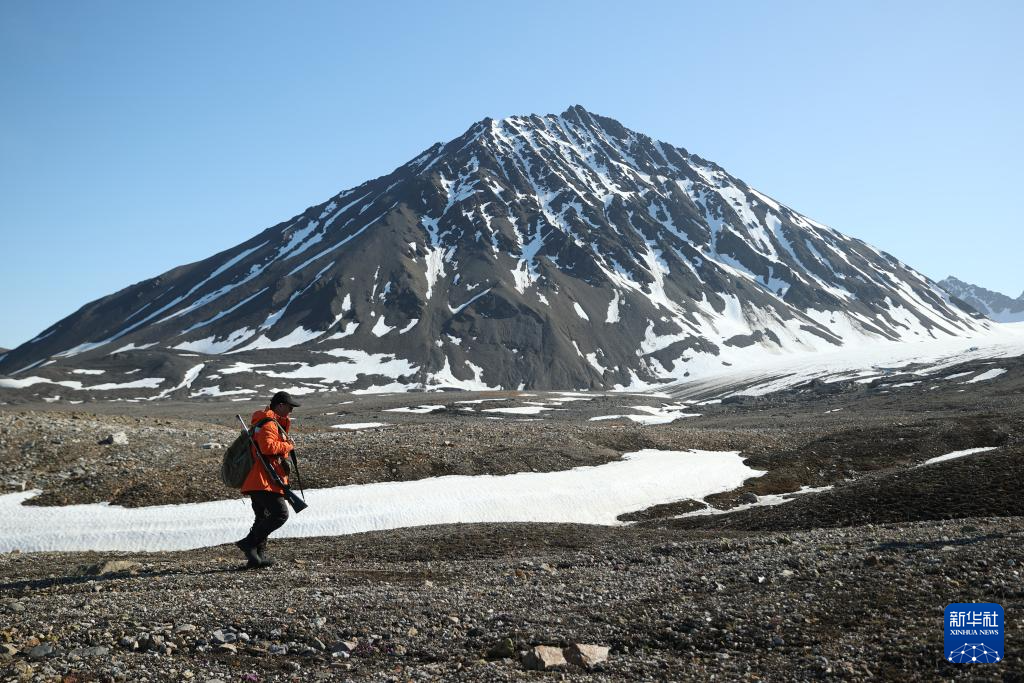 6月22日,在挪威新奥勒松,科考队员胡正毅配枪外出进行采样工作。北极熊伤人的事件偶有发生,新奥勒松要求人们必须配枪才能离开小镇。