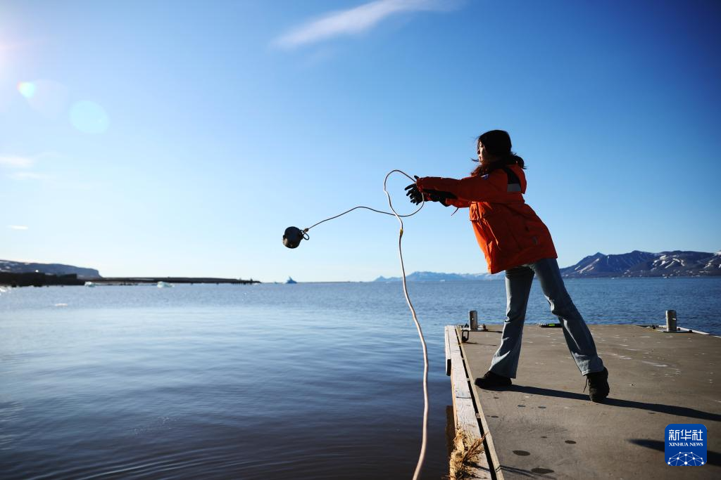 6月21日,在挪威新奥勒松,科考队员、同济大学化学科学与工程学院博士生武小涵在进行海水样品采集。