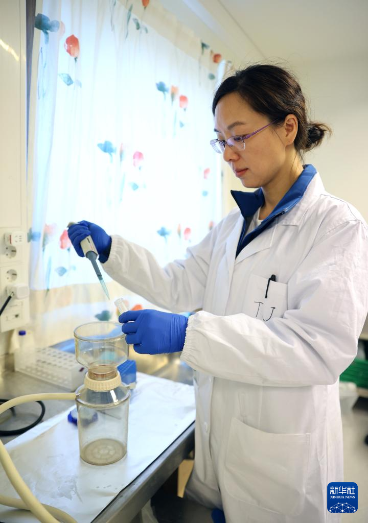 6月21日,在挪威新奥勒松,科考队员、同济大学化学科学与工程学院教授赵红颖在黄河站进行样品采集。