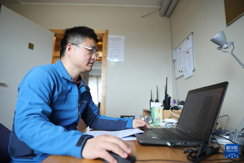 6月21日,在挪威新奥勒松,科考队员胡正毅在黄河站内工作。