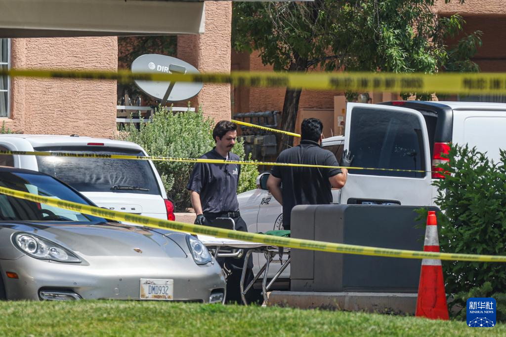 美国内华达州发生枪击事件致5死1伤-6月25日,警察在美国内华达州北拉斯维加斯市枪击事件现场调查。'...