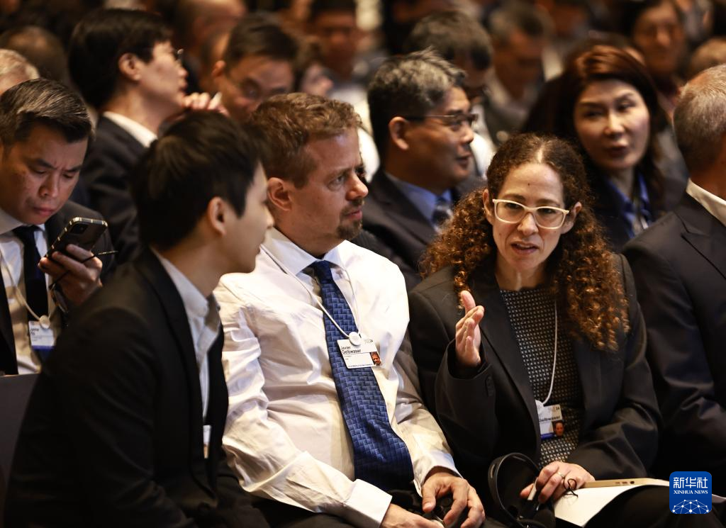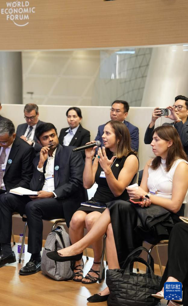 6月25日,在夏季达沃斯论坛主会场大连国际会议中心,嘉宾参与互动讨论。