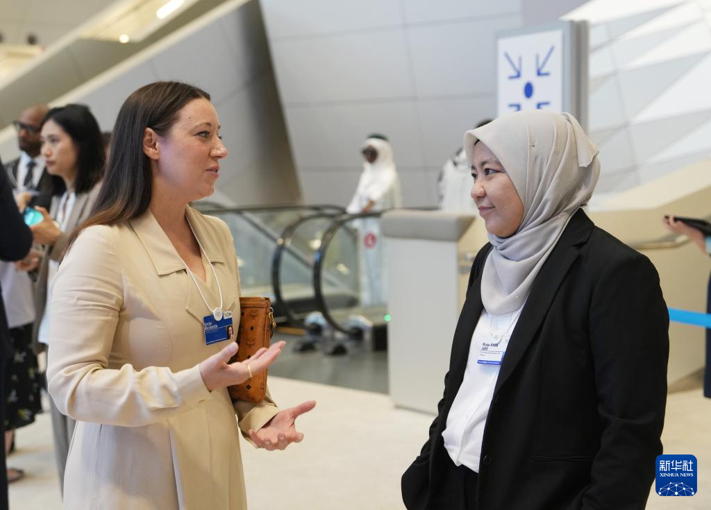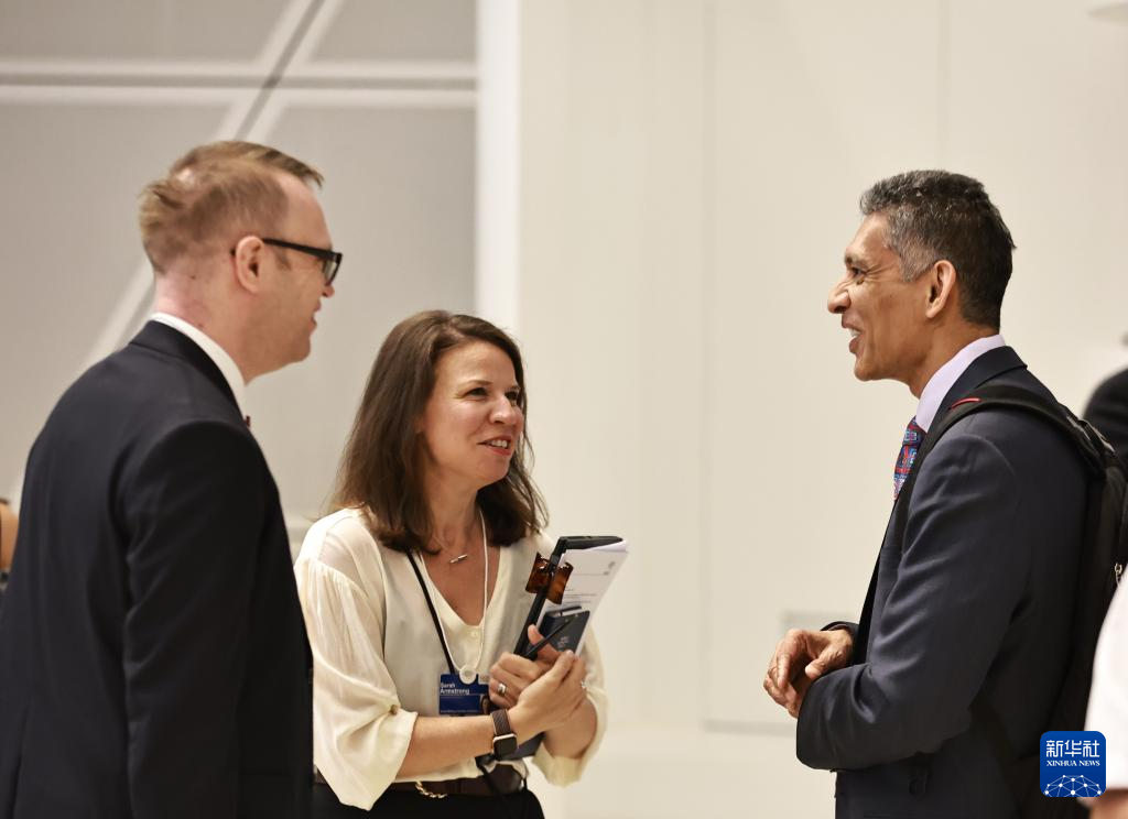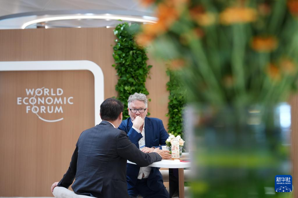 6月25日,在夏季达沃斯论坛主会场大连国际会议中心,嘉宾在交流讨论。