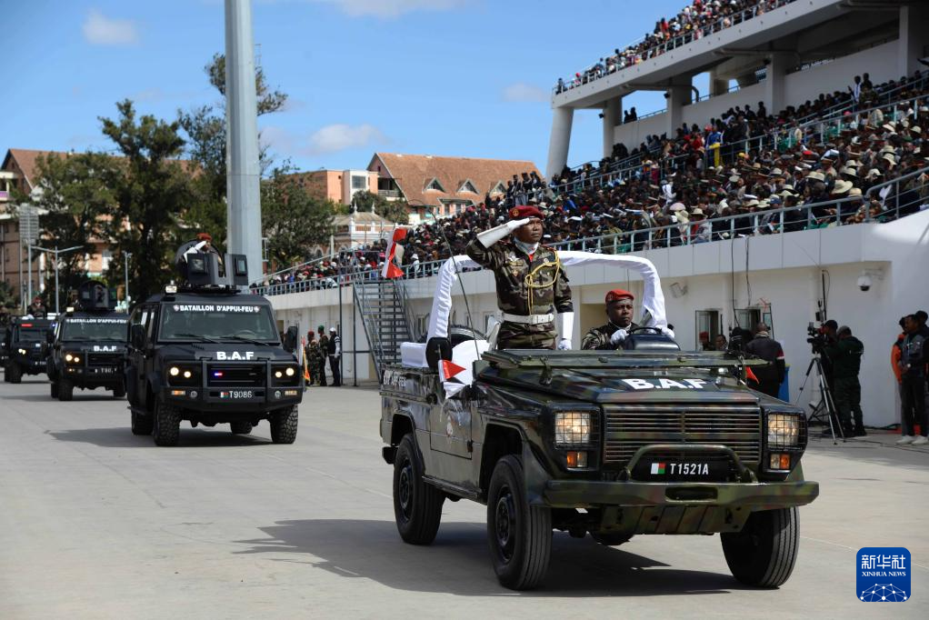 当日,马达加斯加举行国庆日阅兵活动,庆祝独立64周年。