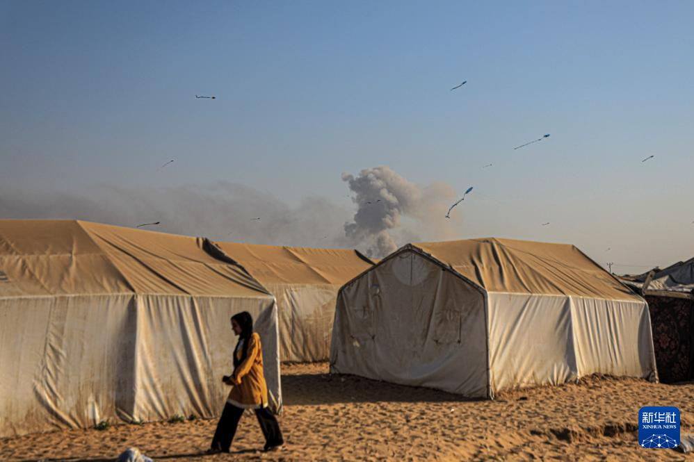 6月28日,以军轰炸加沙地带南部城市拉法后浓烟升起。