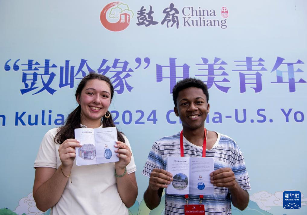 参加2024“鼓岭缘”中美青年交流周活动的两名学生代表展示在鼓岭“打卡”“盖章”(6月24日摄)。