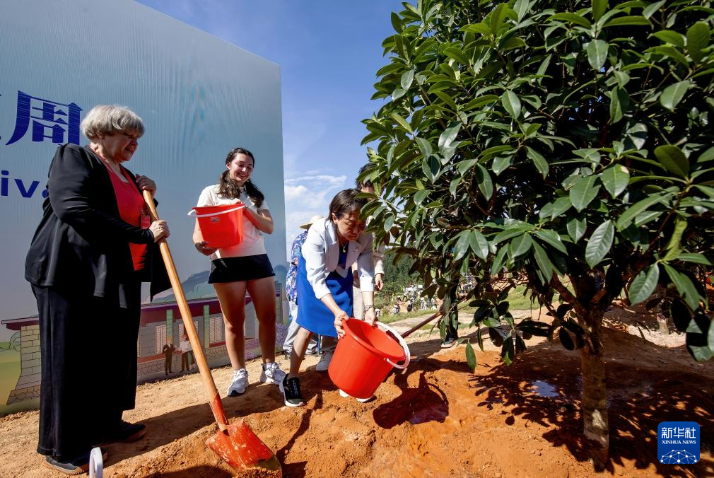 参加2024“鼓岭缘”中美青年交流周的嘉宾在鼓岭共同植树留念(6月24日摄)。