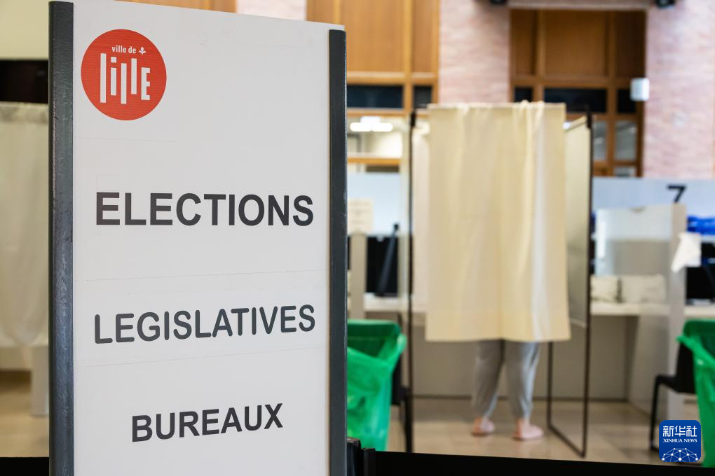 6月30日,人们在法国北部城市里尔一处投票站投票。