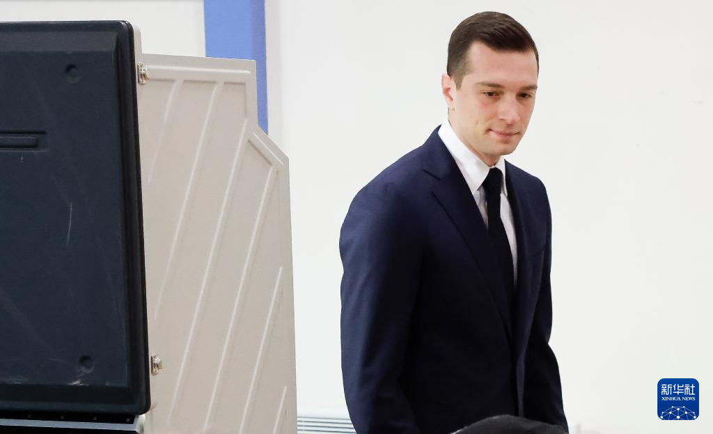 6月30日,国民联盟主席若尔当·巴尔代拉在法国巴黎附近的加尔什的一处投票站投票。