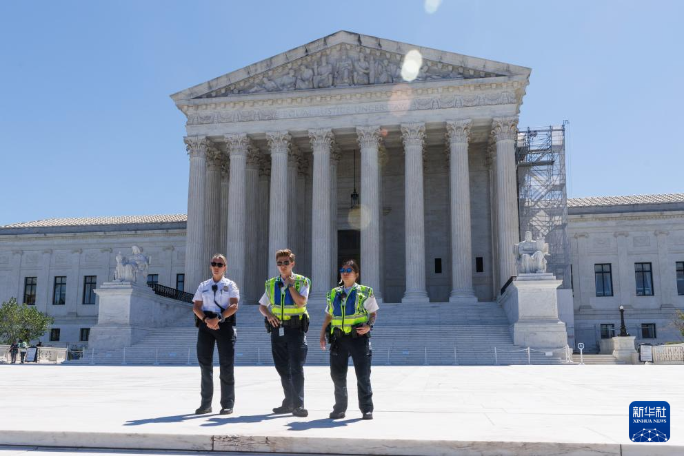 7月1日,警察在美国首都华盛顿的美国联邦最高法院前执勤。