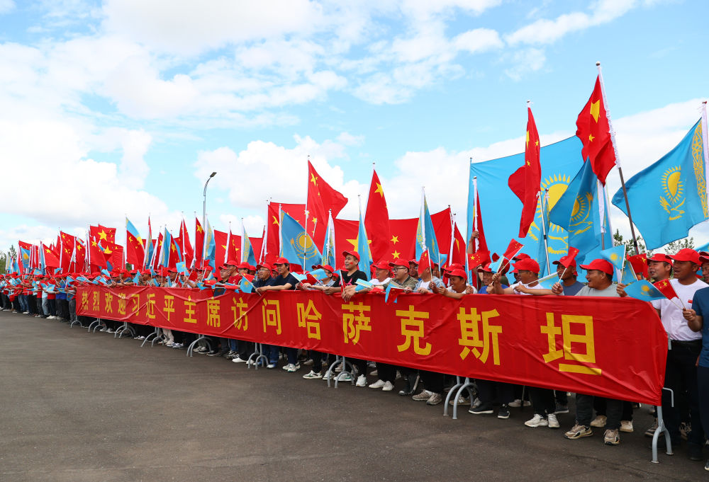 哈方在机场举行隆重欢迎仪式,哈萨克斯坦少年儿童用中文演唱《歌唱祖国》。习近平乘车从机场赴下榻饭店途中,当地中资企业代表等候在道路两旁,挥舞中哈两国国旗,高举“热烈欢迎习近平主席访问哈萨克斯坦”等红色横幅,热烈欢迎习近平主席到访。