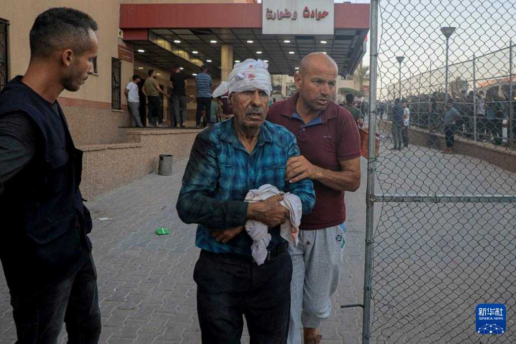 7月9日,在加沙地带南部汗尤尼斯,人们转移一名伤者。