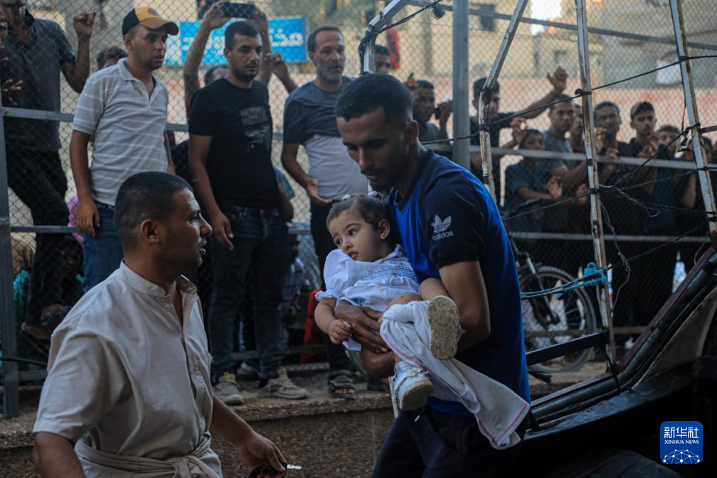 7月9日,在加沙地带南部城市汗尤尼斯,一名男子抱着一名受伤的女孩。