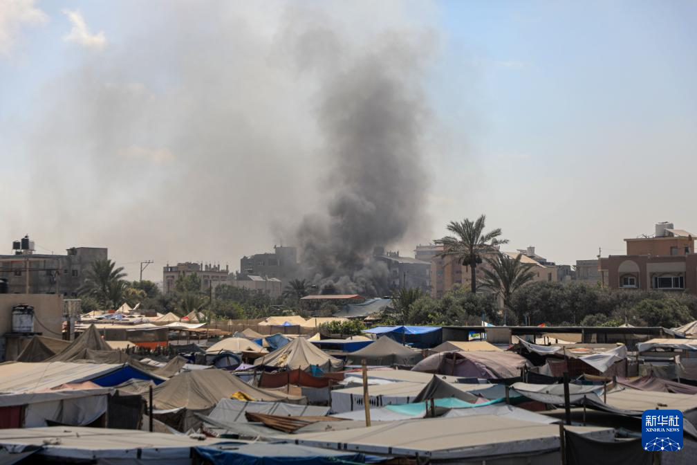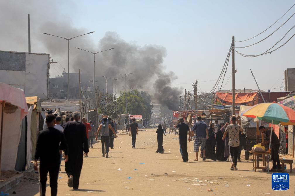 7月13日,在加沙地带南部汗尤尼斯的马瓦西地区,以军袭击后浓烟升起。
