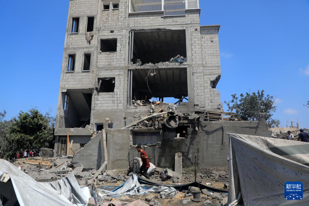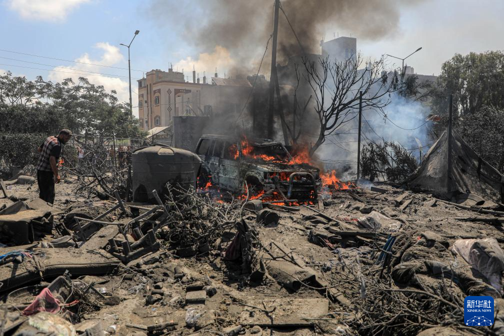 7月13日,在加沙地带南部汗尤尼斯的马瓦西地区,以军袭击导致房屋和车辆被毁。