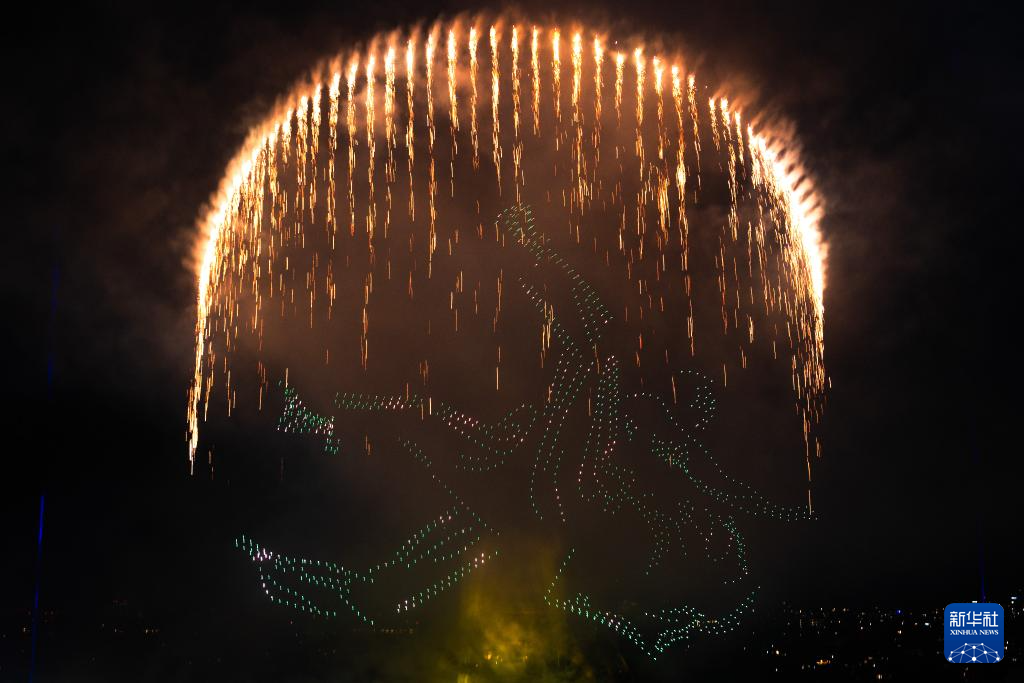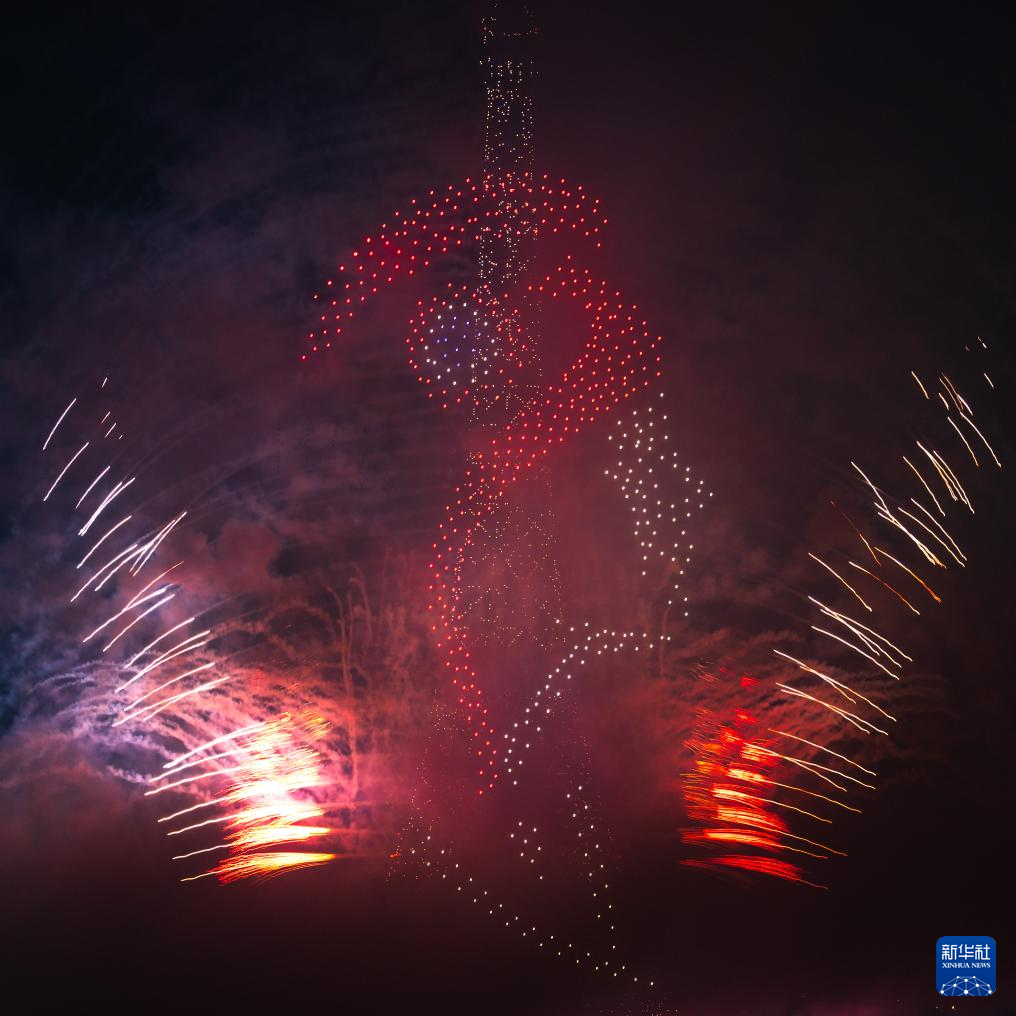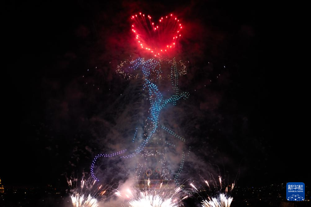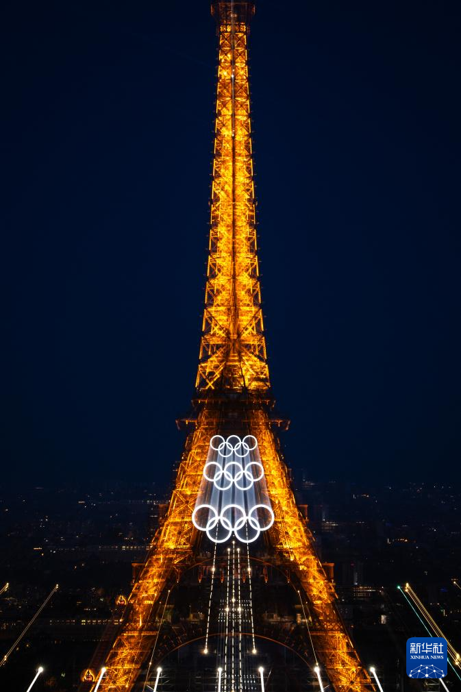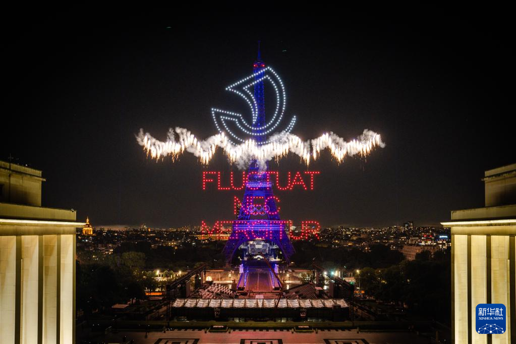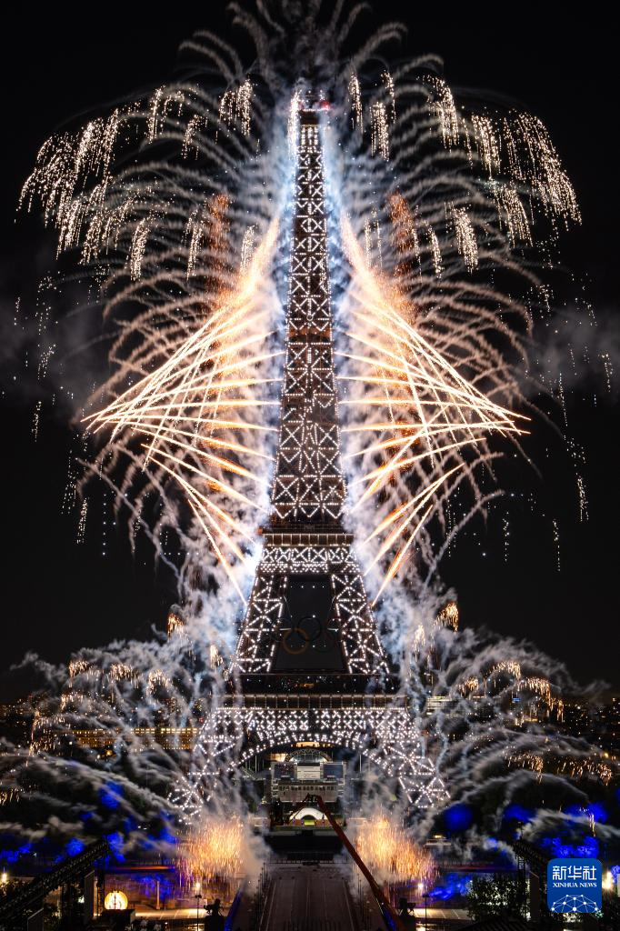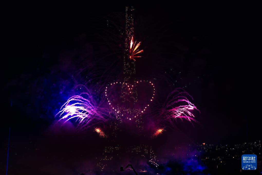 7月14日是法国国庆节。奥运元素在国庆节光影焰火秀中精彩亮相。