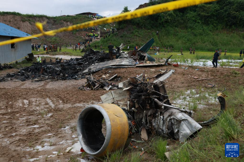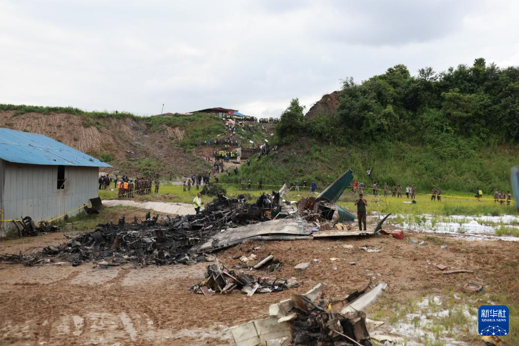 这是7月24日在尼泊尔加德满都拍摄的飞机坠毁现场。