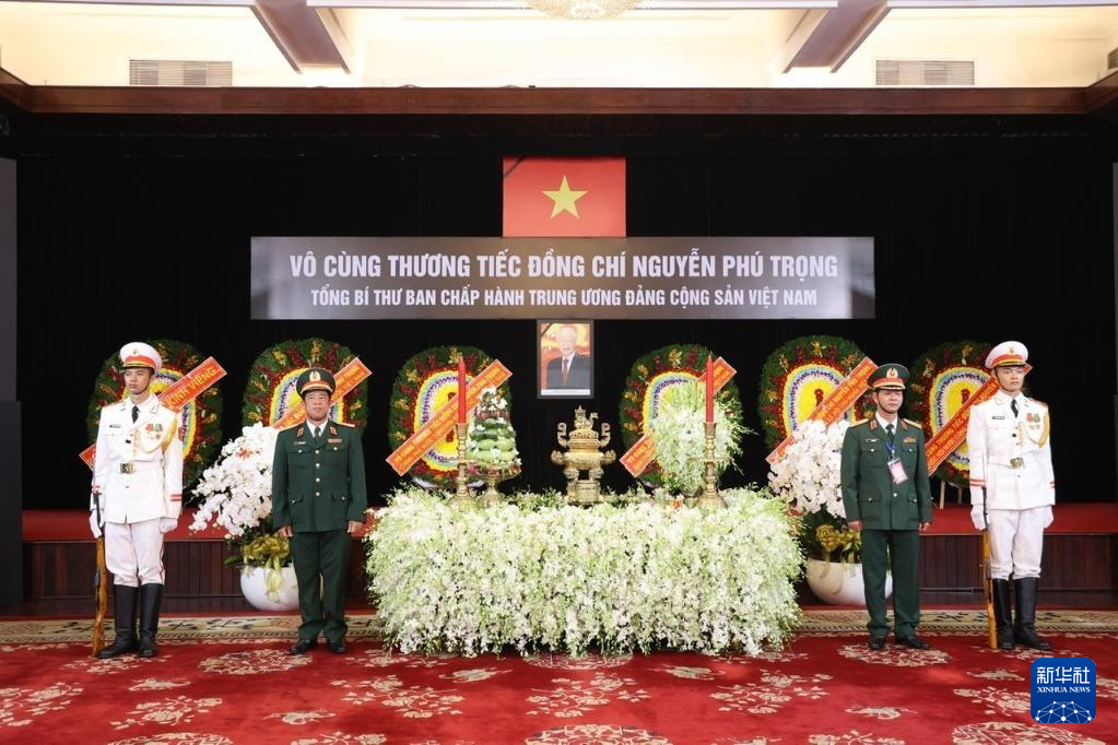 越南各界对已故越共中央总书记阮富仲的吊唁仪式25日在首都河内等地举行。当地时间上午6时整,国旗护卫队在河内市巴亭广场举行降半旗仪式。25日和26日国葬期间,越南全国哀悼。