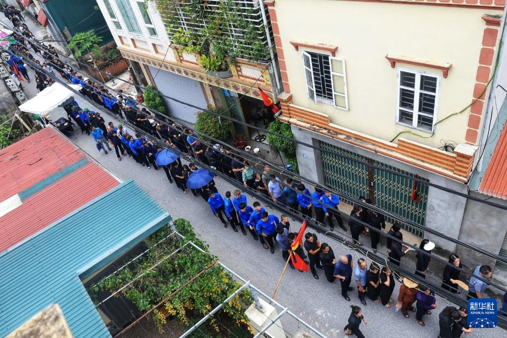 7月25日,在阮富仲的家乡越南河内市东英县东会乡,人们排队等候吊唁。