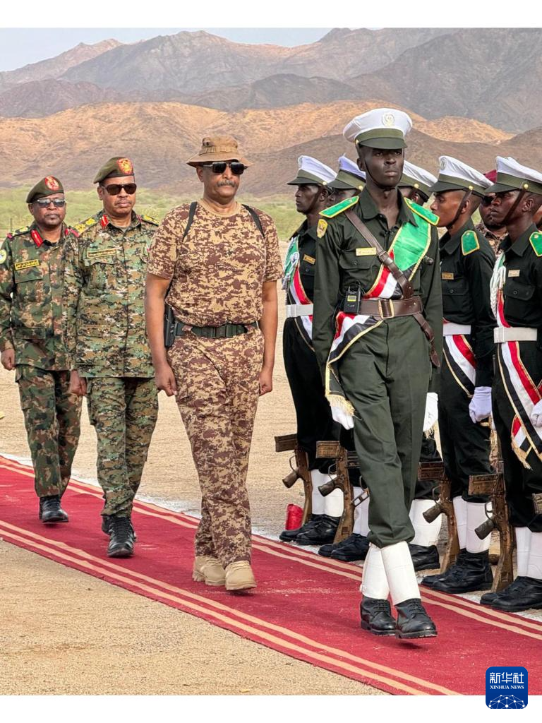 7月31日,在苏丹东部红海州杰拜特军事基地,苏丹主权委员会主席兼武装部队总司令布尔汉(右)出席军事学院毕业典礼。