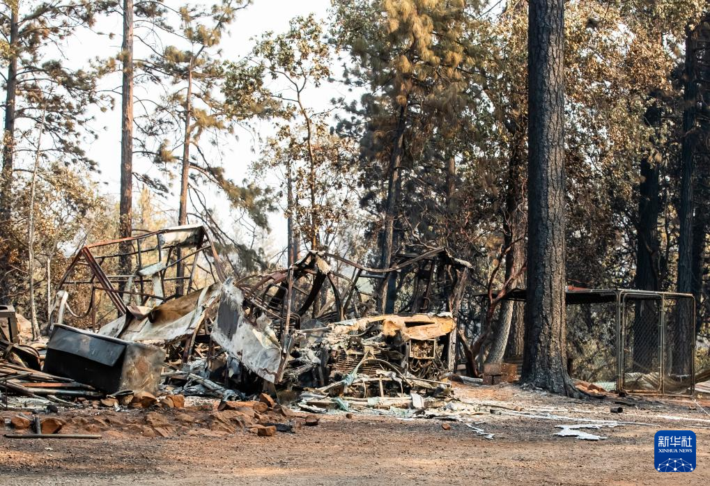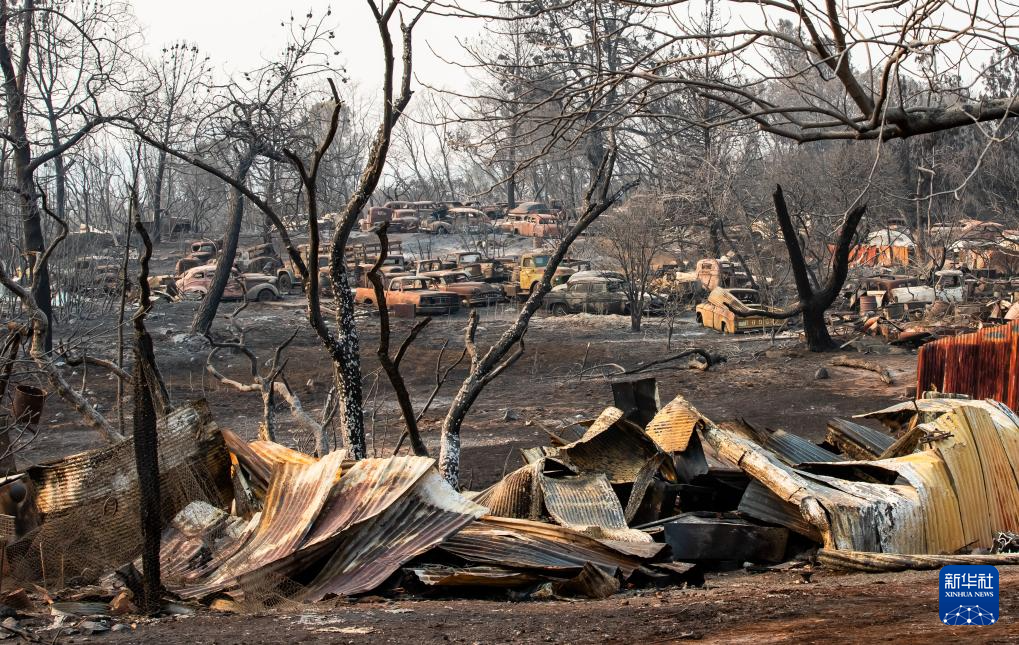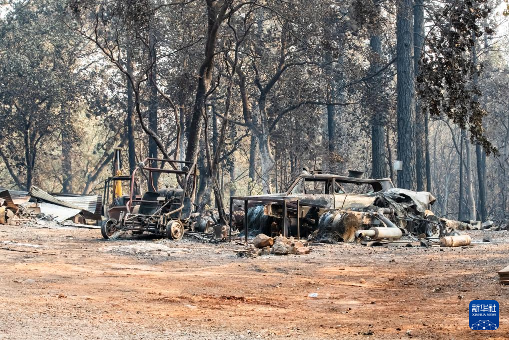 这是7月31日在美国加利福尼亚州奇科拍摄的被山火烧毁的车辆。