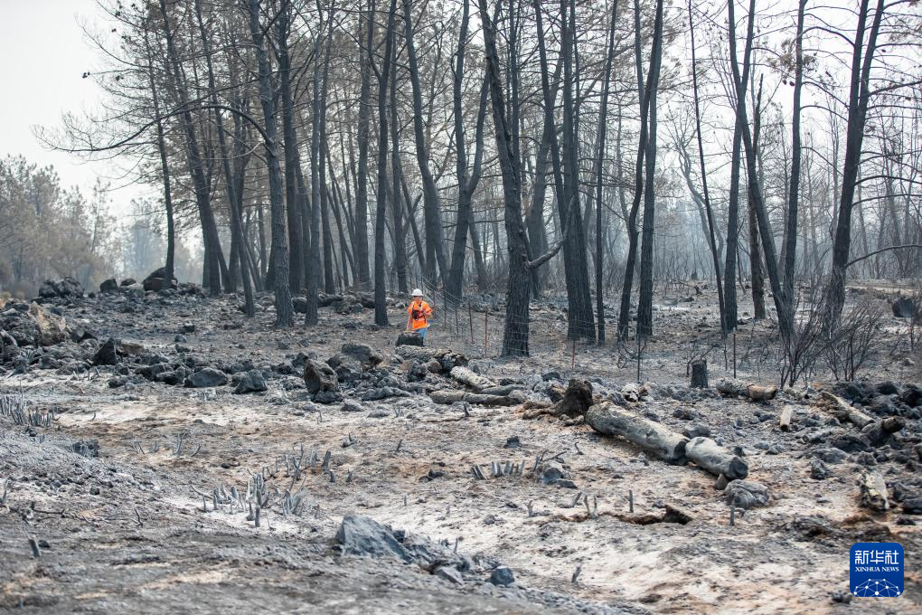这是7月31日在美国加利福尼亚州奇科拍摄的被山火烧毁的树林。