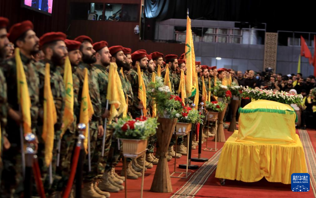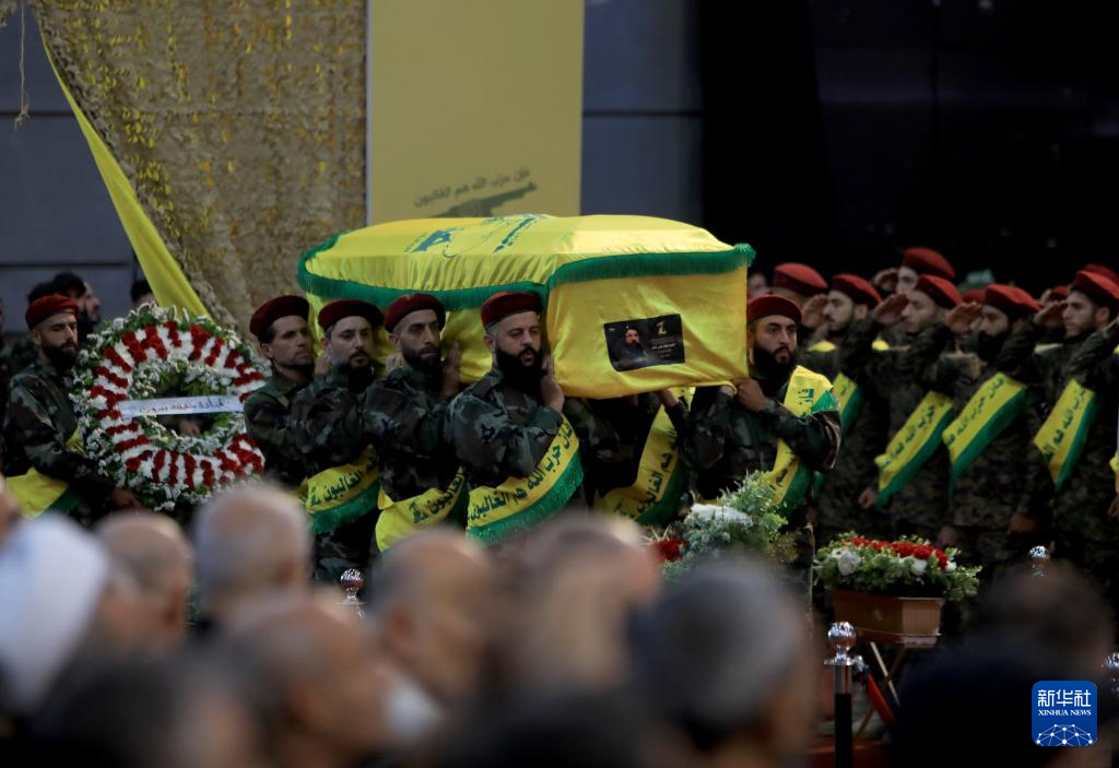 8月1日,在黎巴嫩首都贝鲁特,真主党支持者参加真主党高级军事指挥官福阿德·舒库尔的葬礼。