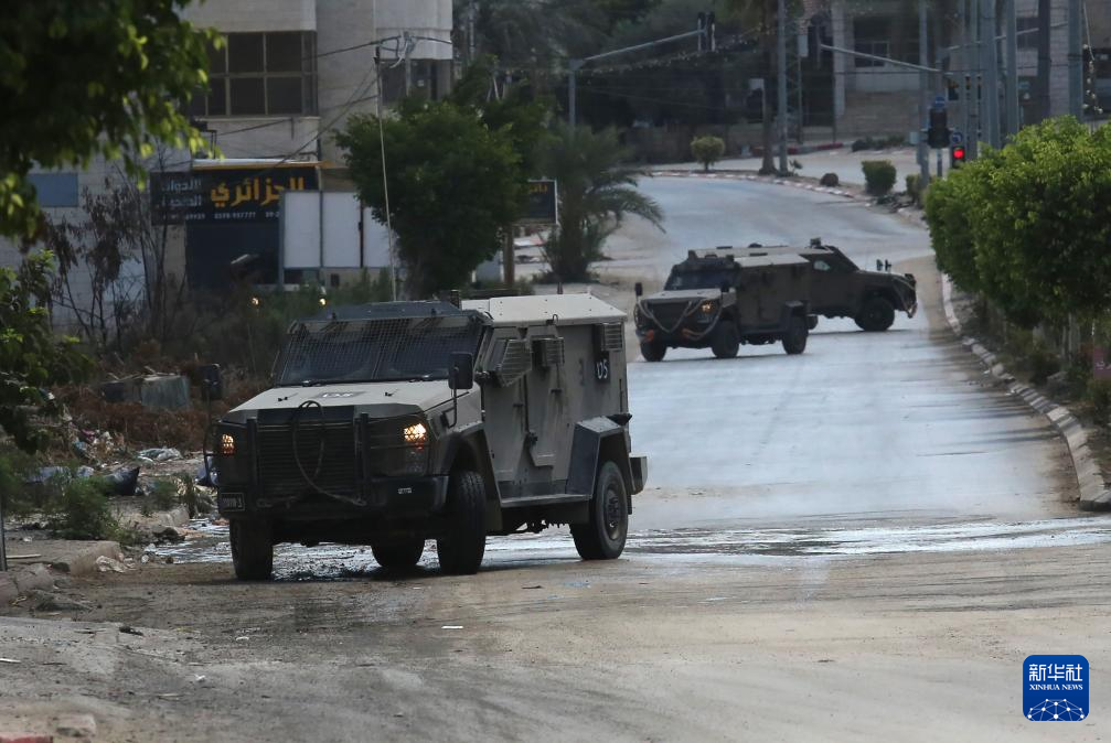 这是8月3日在约旦河西岸城市图勒凯尔姆拍摄的以军车辆。