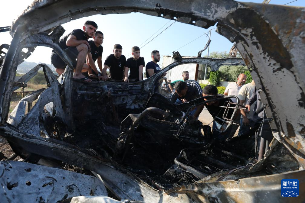 8月3日,在约旦河西岸城市图勒凯尔姆以北的一个城镇,当地民众查看以军袭击后的现场。