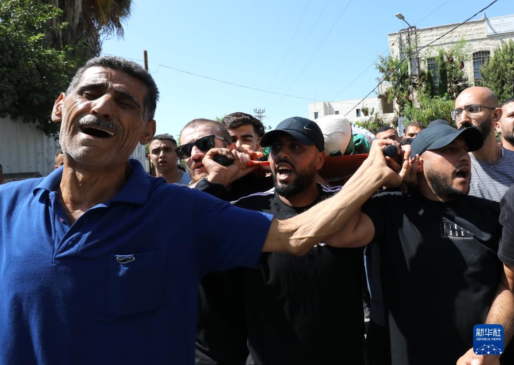 8月3日,在约旦河西岸图勒凯尔姆,民众为以军袭击遇难者举行葬礼。