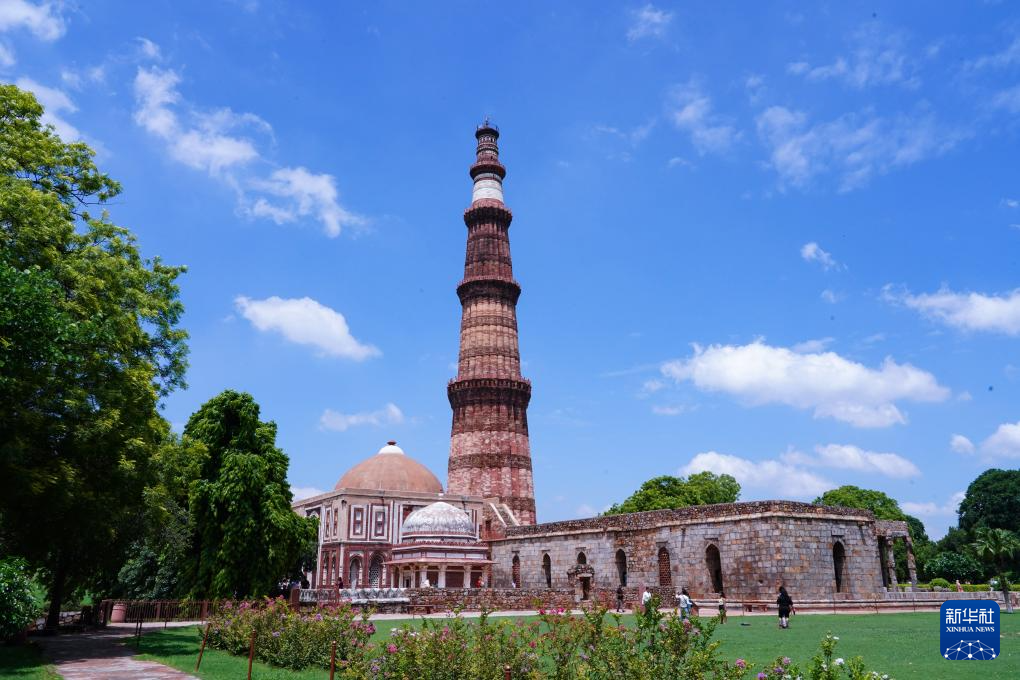 这是8月4日在印度新德里拍摄的顾特卜塔一景。