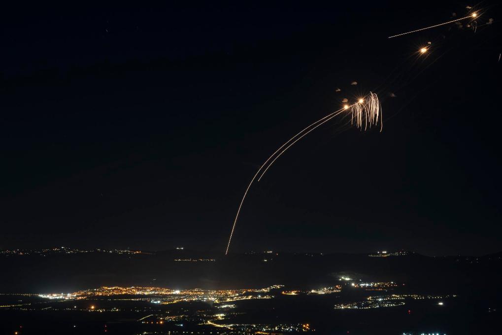 8月4日,以色列“铁穹”防空系统拦截射向以色列北部加利利地区的火箭弹。新华社/美联
