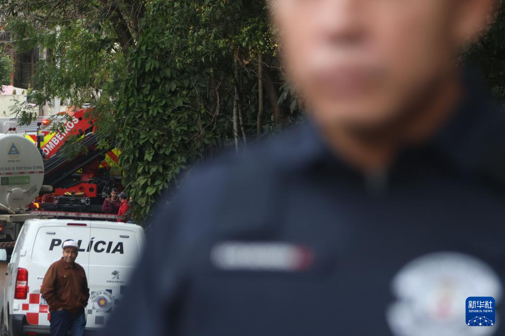 8月9日,警察在巴西圣保罗州维涅杜市坠机现场附近警戒。
