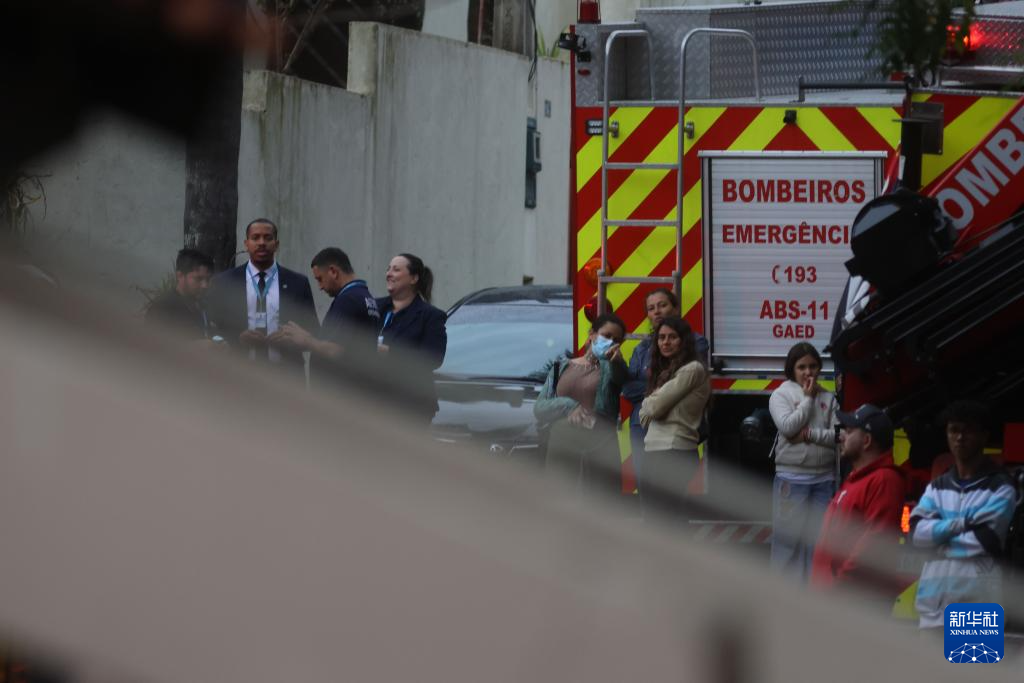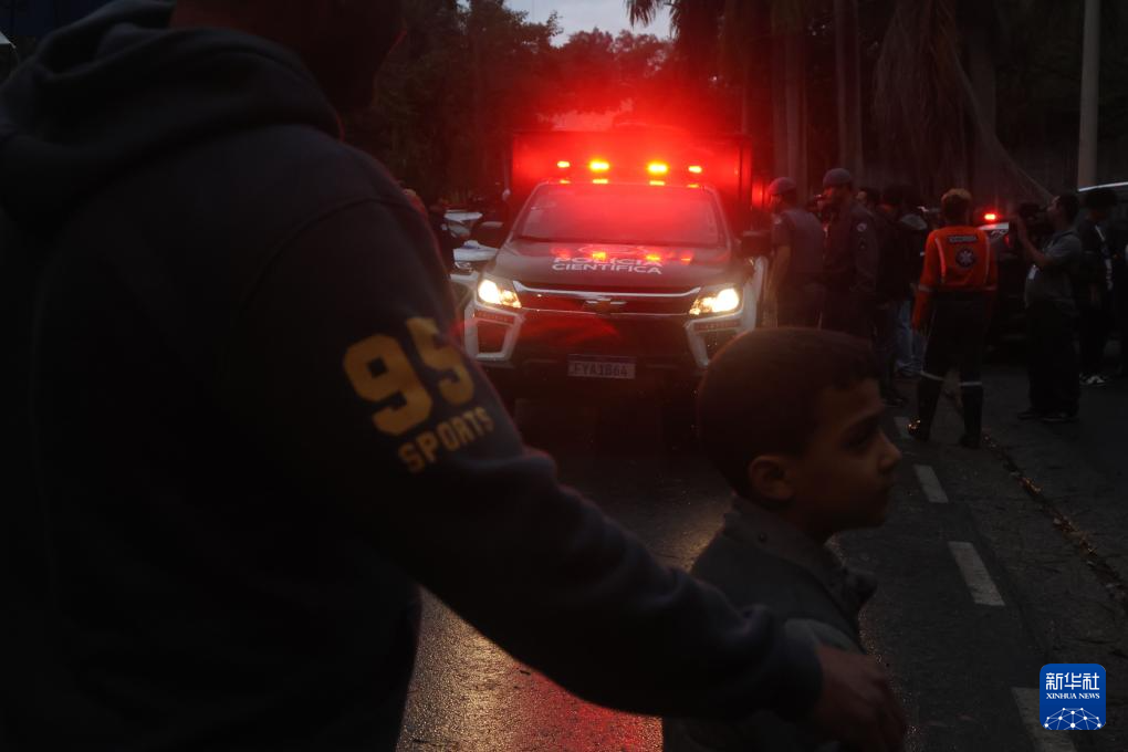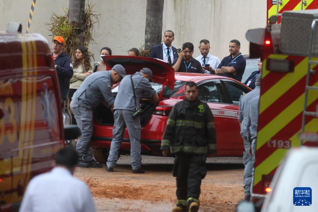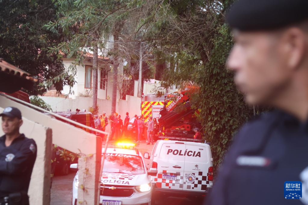 8月9日,消防员在巴西圣保罗州维涅杜市坠机现场附近工作。