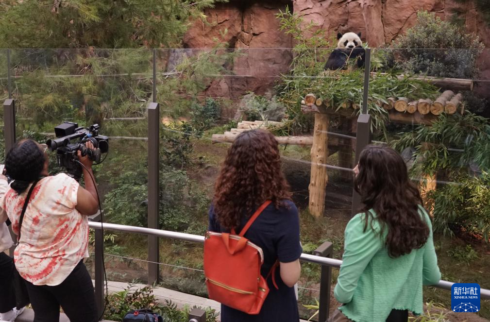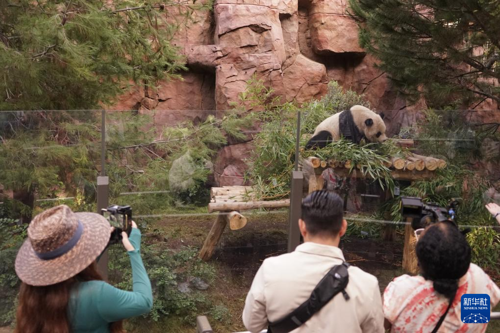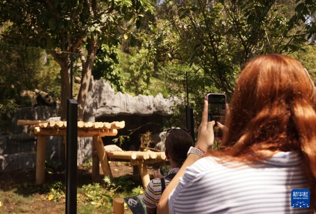 8月8日,人们在美国加利福尼亚州圣迭戈动物园“熊猫岭”给大熊猫“鑫宝”拍照。
