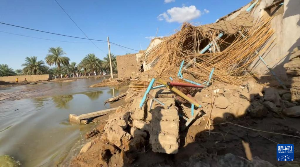 这是8月10日在苏丹北部尼罗河州阿布哈马德市拍摄的因洪水受损的房屋。