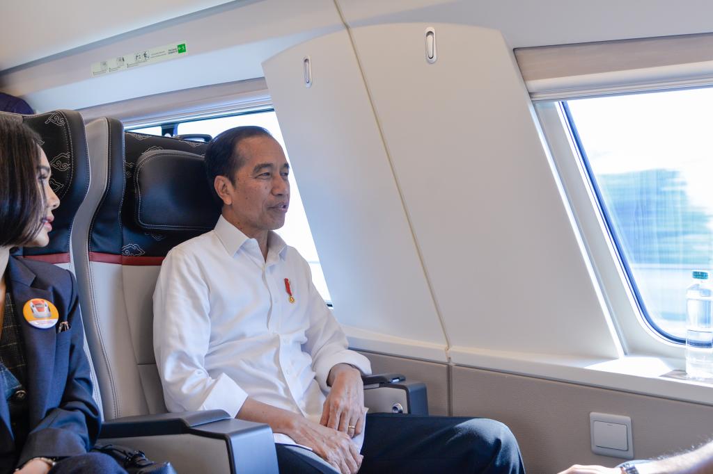 (资料图片)2023年9月13日,印度尼西亚总统佐科乘坐雅万高铁高速动车组列车。新华社记者徐钦摄