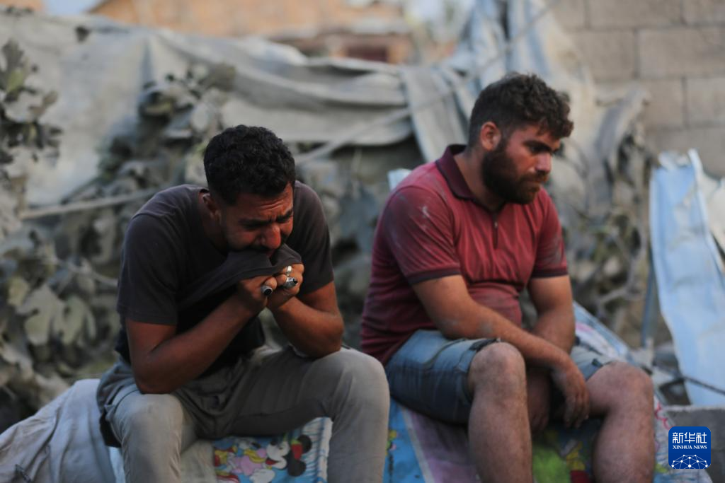 8月17日,在加沙地带中部扎韦达地区,一名男子为遇难者哭泣。