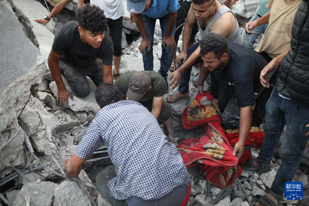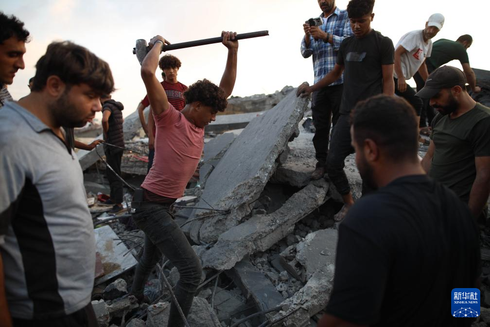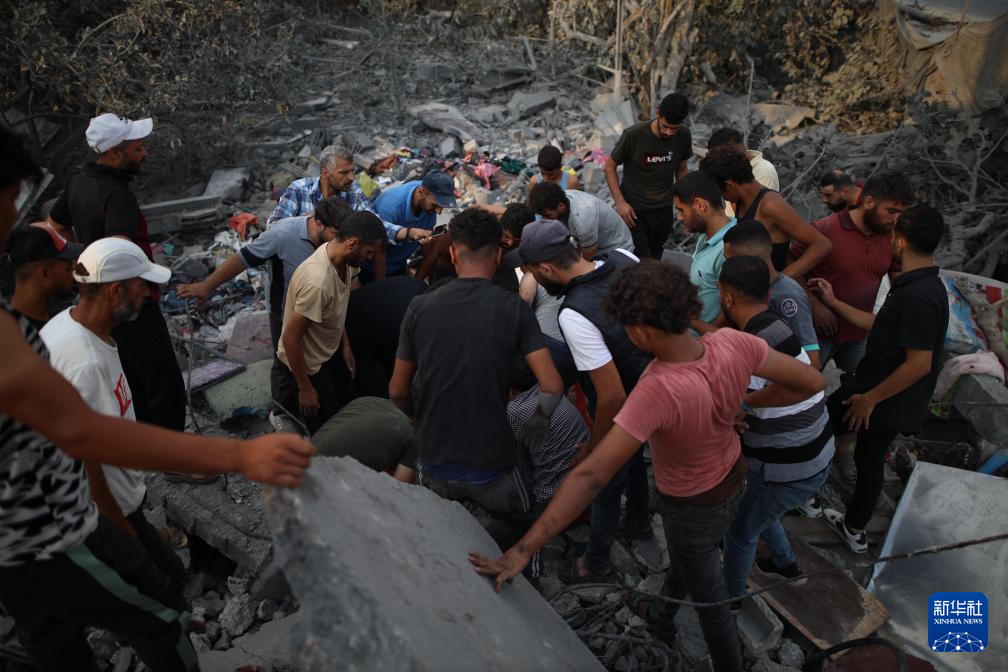 8月17日,在加沙地带中部扎韦达地区,人们在遭以军轰炸后的建筑废墟上开展搜救。