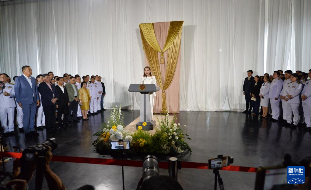 8月18日,在泰国曼谷,佩通坦·钦那瓦(右)在接受任命后致辞。