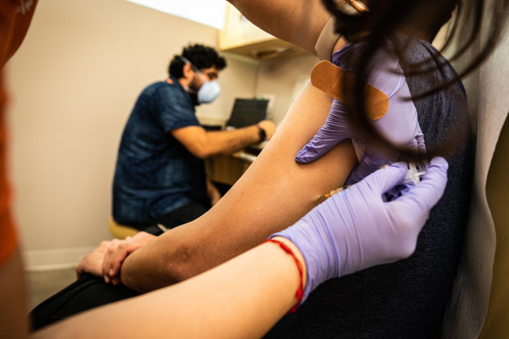 2022年8月26日,在美国芝加哥,医务人员为一名接种者注射猴痘疫苗。新华社发(文森特·约翰逊摄)
