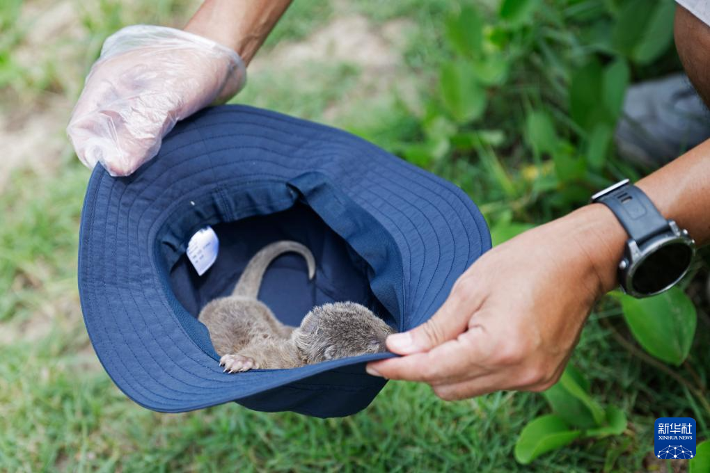 8月23日,新加坡水獭保护机构的工作人员帮助江獭幼崽回到栖息地。