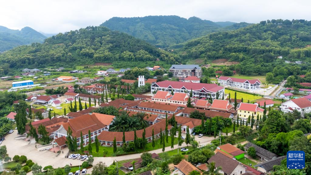 这是8月16日拍摄的老挝琅勃拉邦医院(无人机照片)。