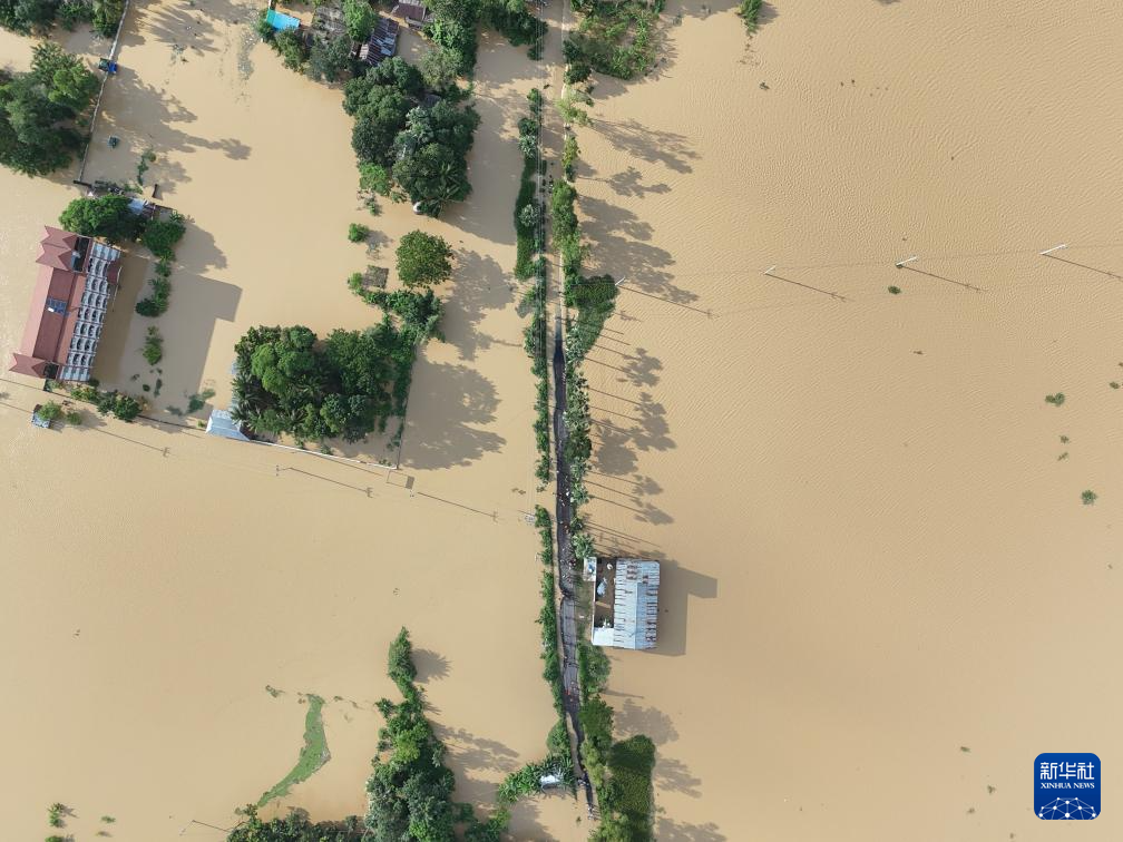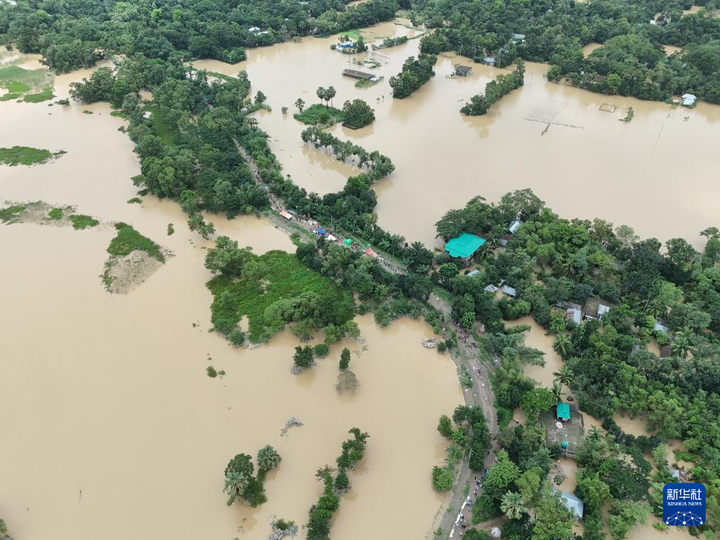 这是8月23日在孟加拉国库米拉拍摄的受灾村庄(无人机照片)。