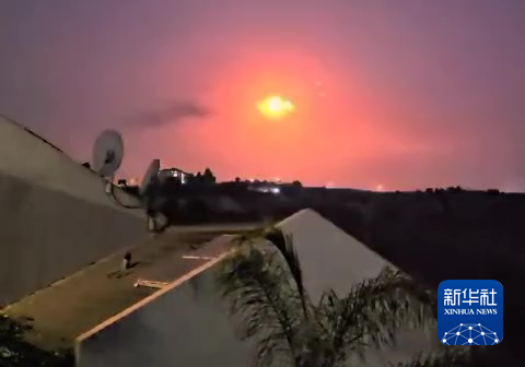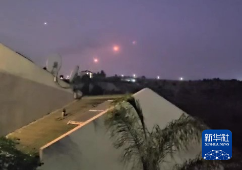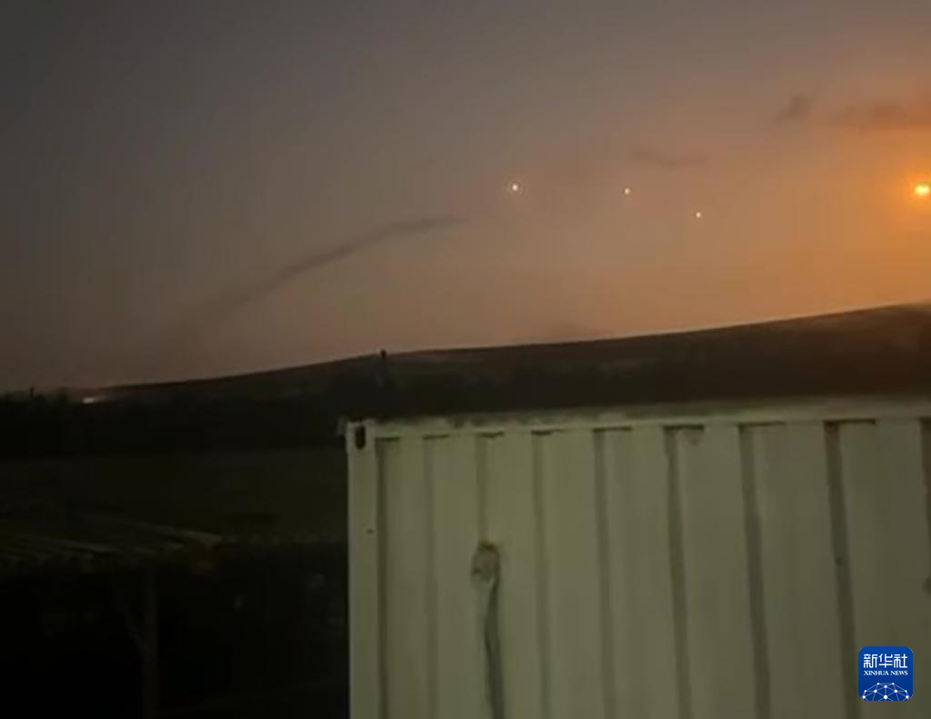 这张社交媒体上的视频截图显示,8月25日,以色列北部防空系统启动拦截。新华社发