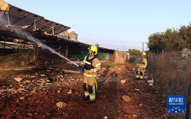 8月25日,在以色列北部加利利地区,消防人员在一处由火箭弹引起的火灾现场进行灭火。